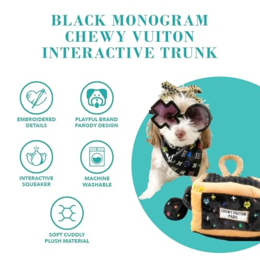 Black Monogram Chewy Vuiton Interactive Trunk Plush Dog Toy with Squeaker for All Breeds Stimulating Enrichment Machine