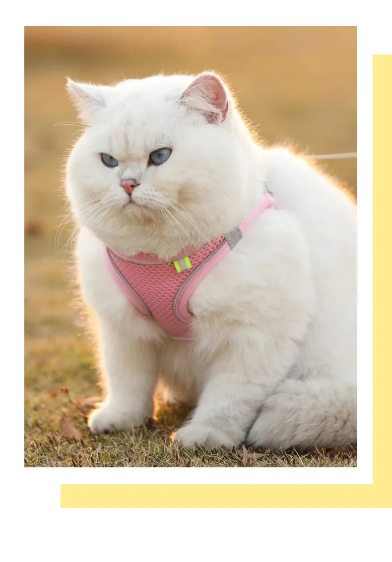 2.Soft Mesh Cat Vest Harness and Nylon Leash Set for Walking Escape Proof No Pull & No Choke Design.The harness will make your kitty safe and comfortable. It is best for walking, running,playing or hiking. This safety harness leash set allows you to walk your pet.