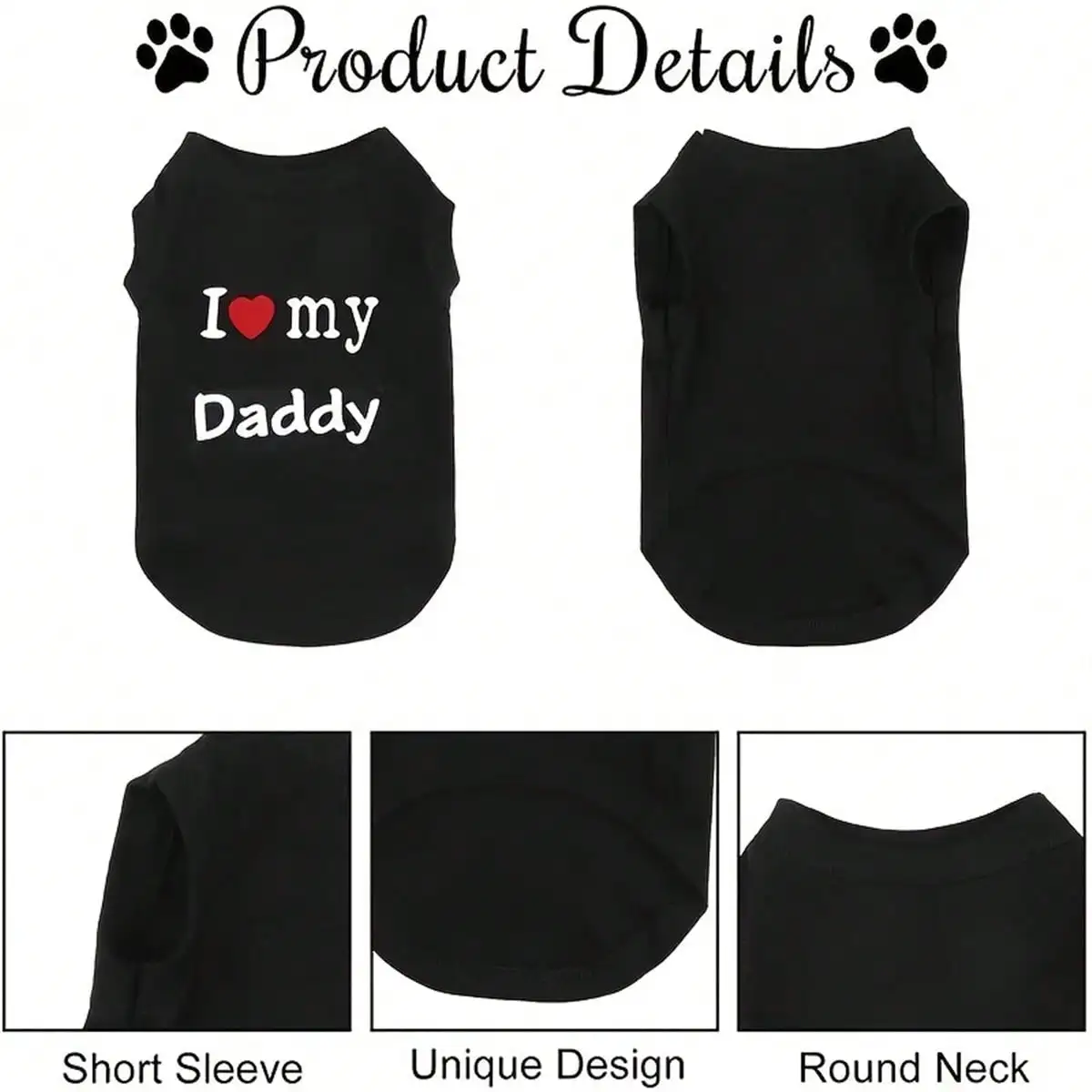 Dog Vest, "I Love My Daddy" Puppy T-Shirt, Summer Sleeveless Vest, Pet Clothing