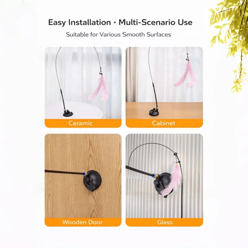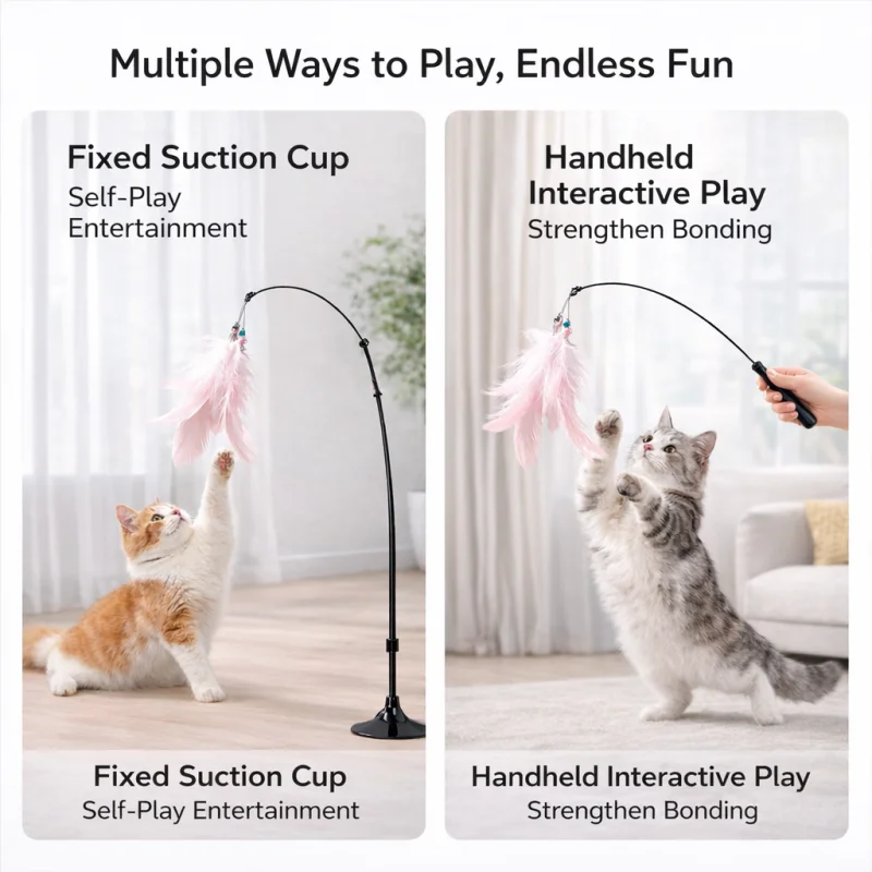 Strong Suction Cup Cat Teaser Toy, Heavy Duty Detachable Long Rod with Bell, Interactive Kitten Toy for Indoor Cats