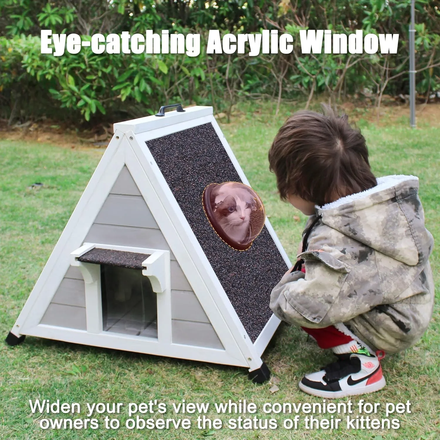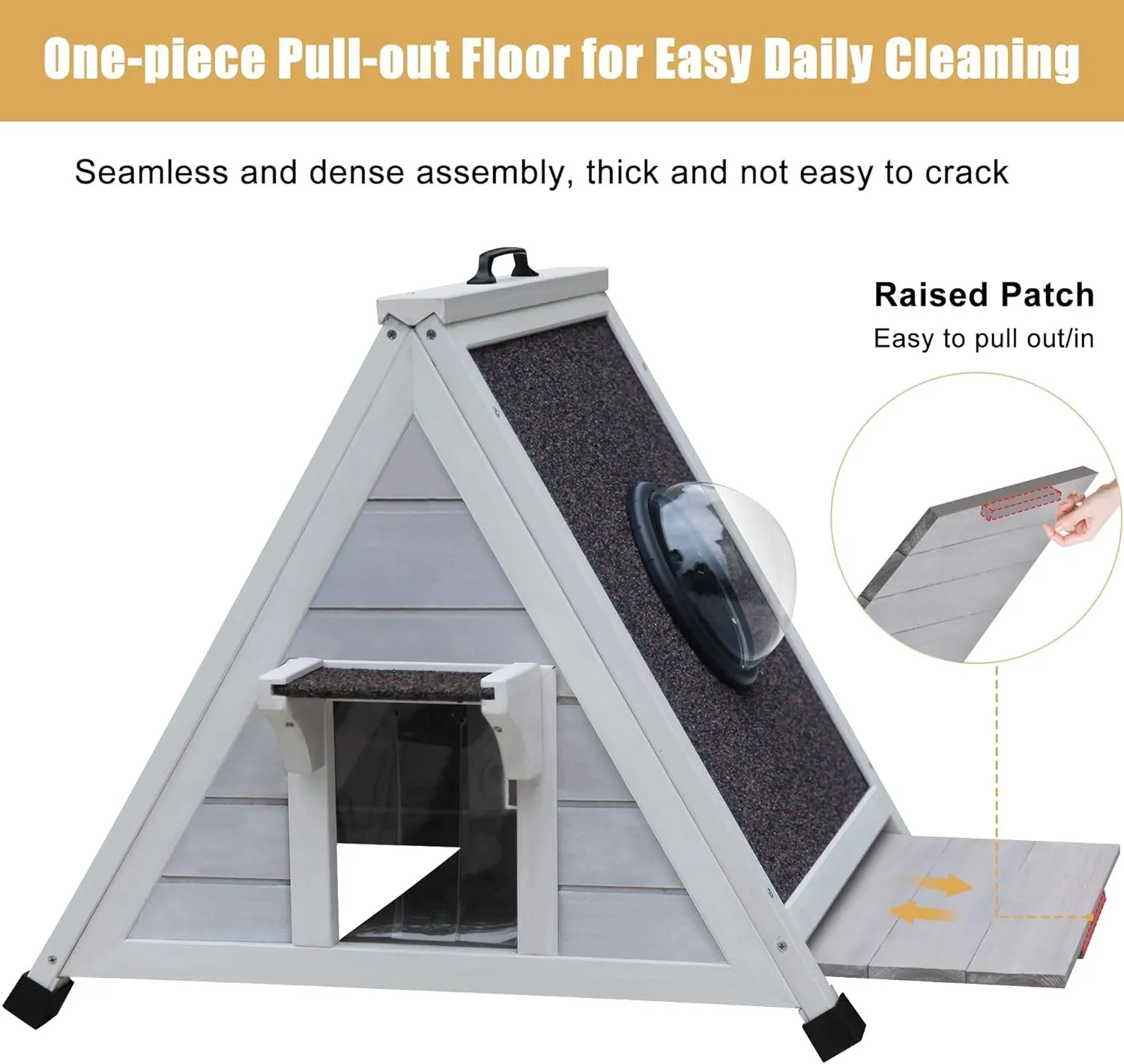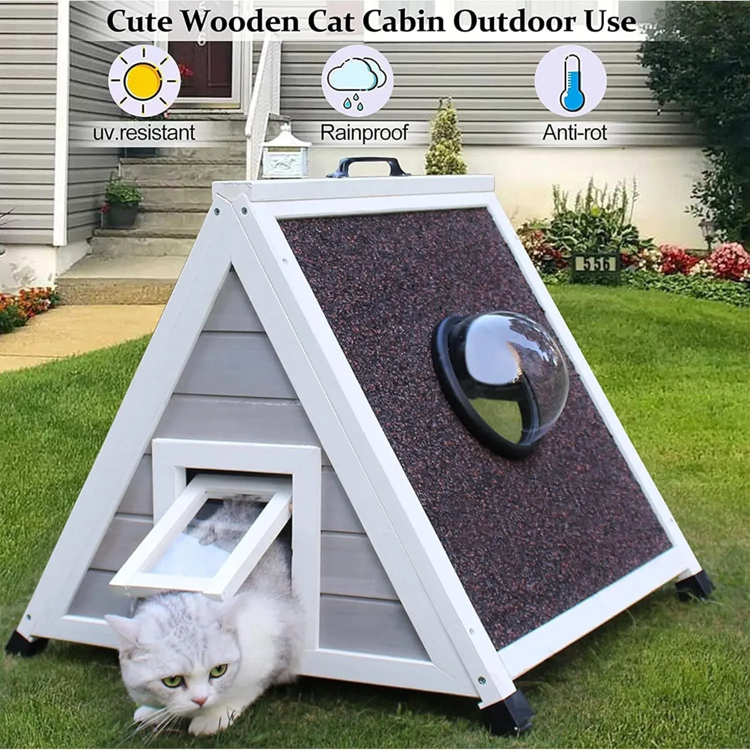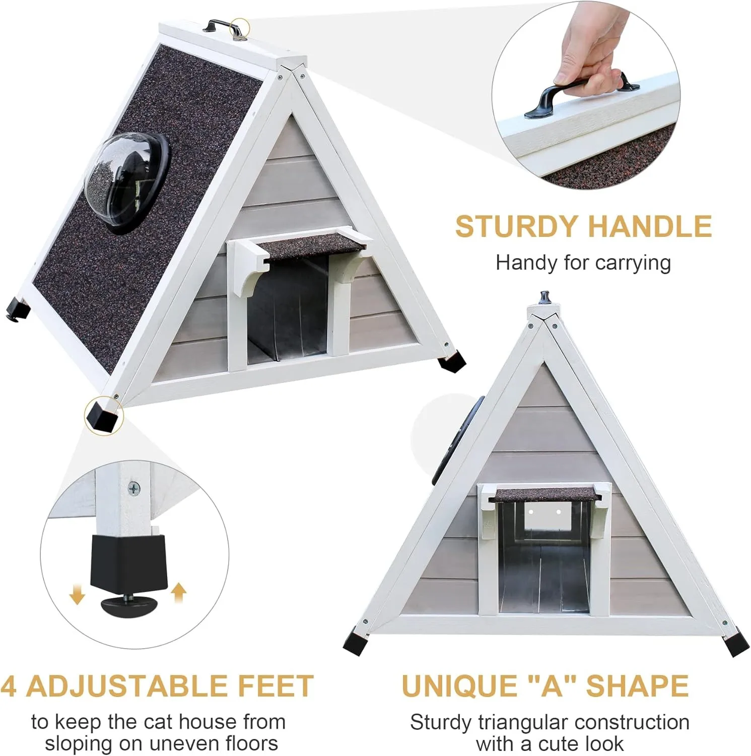 Waterproof Outdoor Cat House for Large Cats, Weather Resistant Wooden Shelter with Escape Door